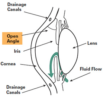 • Although the angle of the eye where the iris meets the cornea is wide open, the eye’s drainage canals become inefficient and clogged over time. Eye pressure increases slowly and because of its gradual rise, patients do not feel any pain in the eye.
